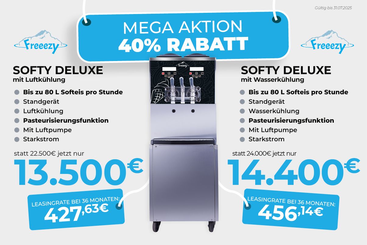 Es handelt sich bei Freeezy um Speieeismaschinen und Sofeismaschinen für Gastronomie. Also rechnen Sie mit robusten Maschinen, die auch hohe Belastung gut überstehen.
