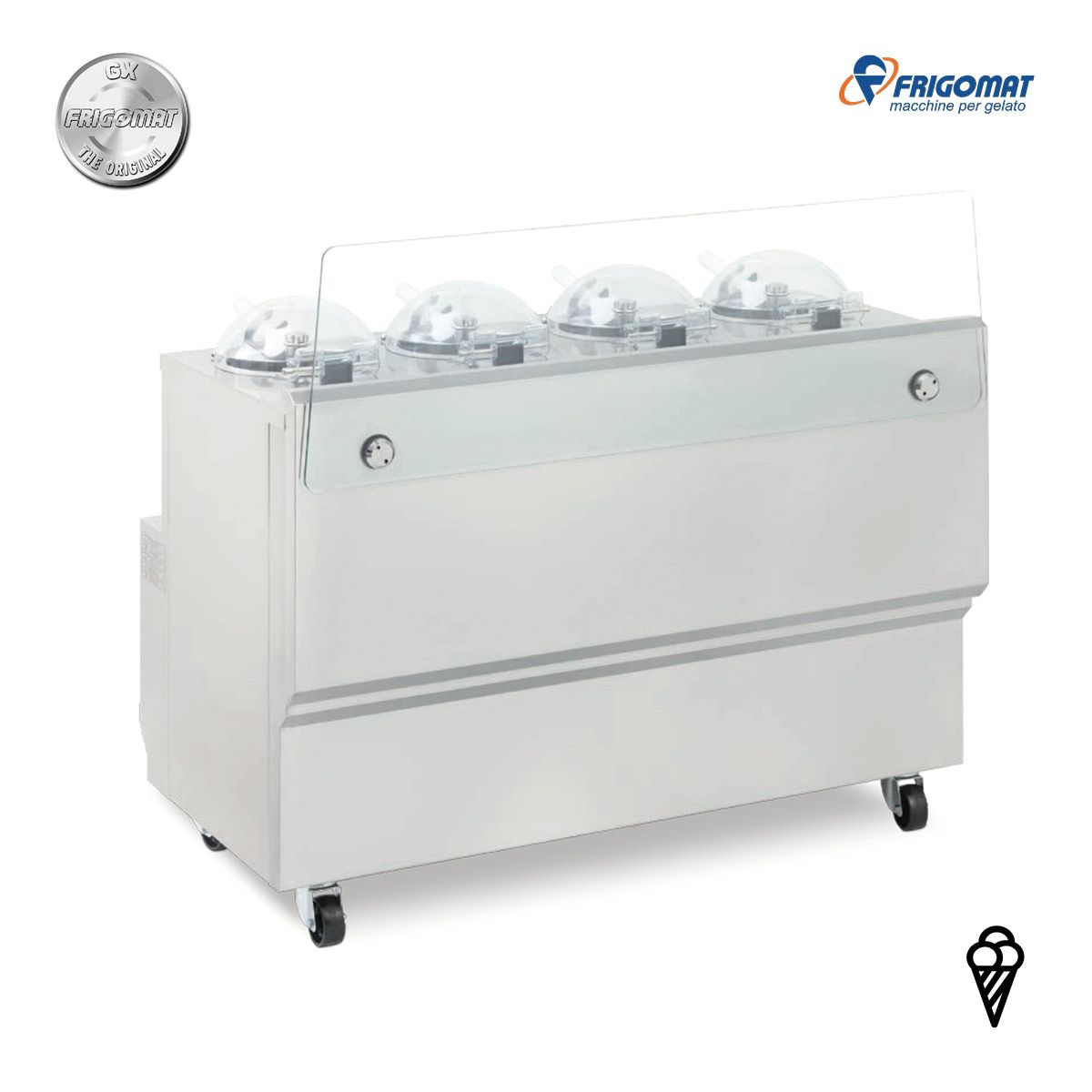 Produzieren, präsentieren und verkaufen – die FRIGOMAT Frischeis und Granita Maschinen der Serie GX vereinen tatsächlich alles in einem einzigen Gerät! Und dank der praktischen Räder können sie auch einfach transportiert werden.