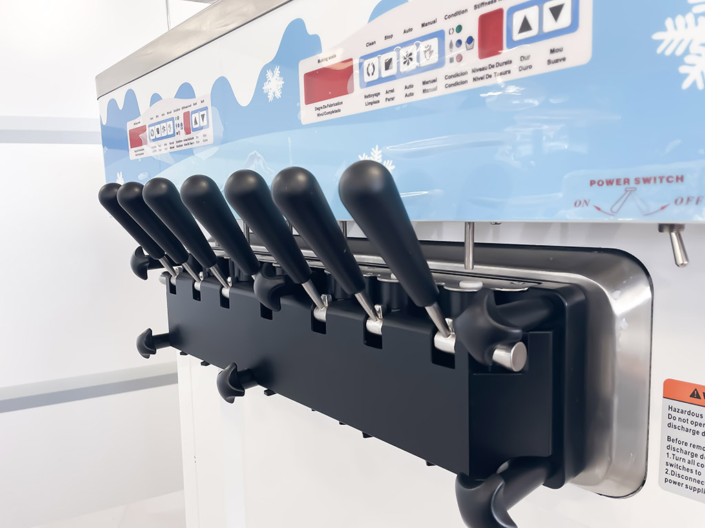 Ob im Schnellrestaurant, auf Events oder im Eiscafé: Diese Softeismaschine mit sieben Hebeln sorgt für schnelle Abläufe, klare Bedienung und höchste Sortenvielfalt – selbst bei großem Andrang.