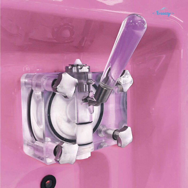 Mit der Freeezy Softeismaschine Softy Mini Deluxe pink produzieren Sie im Handumdrehen bis zu 50 Liter köstliches Softeis pro Stunde. Dank ihres kompakten Tischdesigns passt sie perfekt in kleine Gastronomiebetriebe und ist trotzdem leistungsstark genug, um selbst größere Nachfrage zu bedienen.