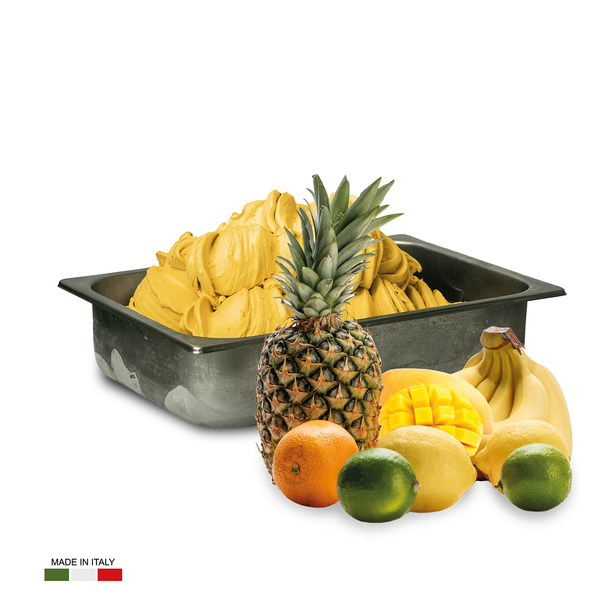Unsere Mischung ermöglicht es Ihnen, im Handumdrehen ein exotisches Eis zu zaubern, das durch ein harmonisches Zusammenspiel verschiedener tropischer Früchte besticht. Die Fertigmischung vereinfacht die Eisproduktion und sorgt für ein Dessert, das durch seinen Geschmack und seine Konsistenz überzeugt. Perfekt für alle, die ihren Gästen ein erfrischendes und geschmacklich vielfältiges Eis bieten möchten.